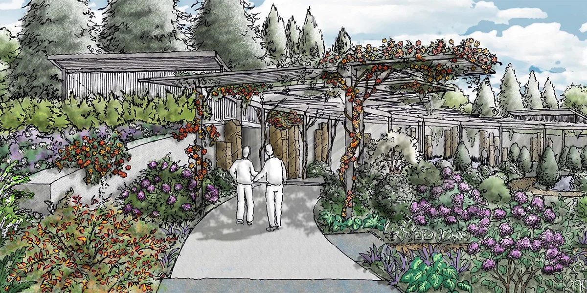 Five new gardens delight visitors and build plant collections: the Gateway Gardens, the Upper Pond and Pinetum, the Redbud Forest, the Creekside Garden, and the Parking Gardens. The team developed the Gateway Gardens through full construction documents, including road alignment, grading, utilities, and detailed design for plantings and sculptural metal entry screen. The other areas included design development level documentation.